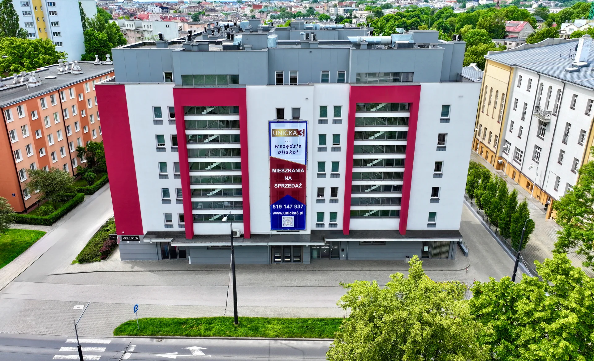 Unicka 3 to nowoczesne mieszkania od 26 do 75 m² stworzone dla inwestorów, medyków, studentów i osób żyjących w centrum. Mieszkania rozmieszczone są od parteru po szóste piętro, w obrębie czterech niezależnych klatek schodowych. Komfort i wygodę komunikacji między piętrami zapewniają cichobieżne windy elektryczne, gwarantując szybki i bezproblemowy dostęp do każdego mieszkania.